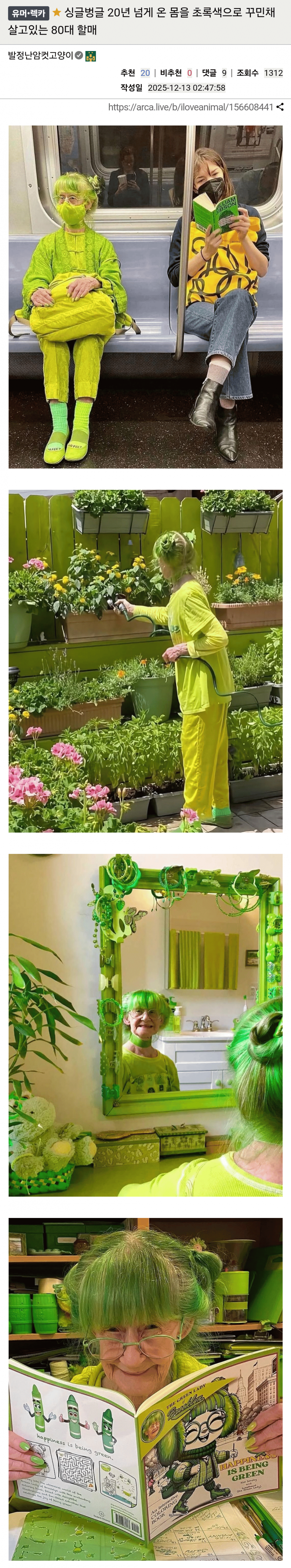 20년 넘게 온 몸을 초록색으로 꾸민채 살고있는 80대 할매 포트리쯔 0 272 0 2시간전 link URL 복사: https://humorpick.com/bbs/board.php?bo_table=humor&wr_id=397366 0