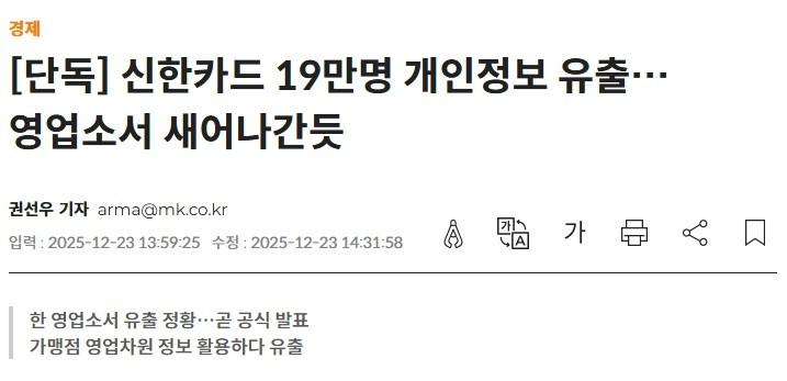 [속보] 신한카드 19만명 개인 정보 유출 몽둥이 0 278 0 2시간전 link URL 복사: https://humorpick.com/bbs/board.php?bo_table=humor&wr_id=398063 [단독] 신한카드 19만명 개인정보 유출…영업소서 새어나간듯 - 매일경제 0