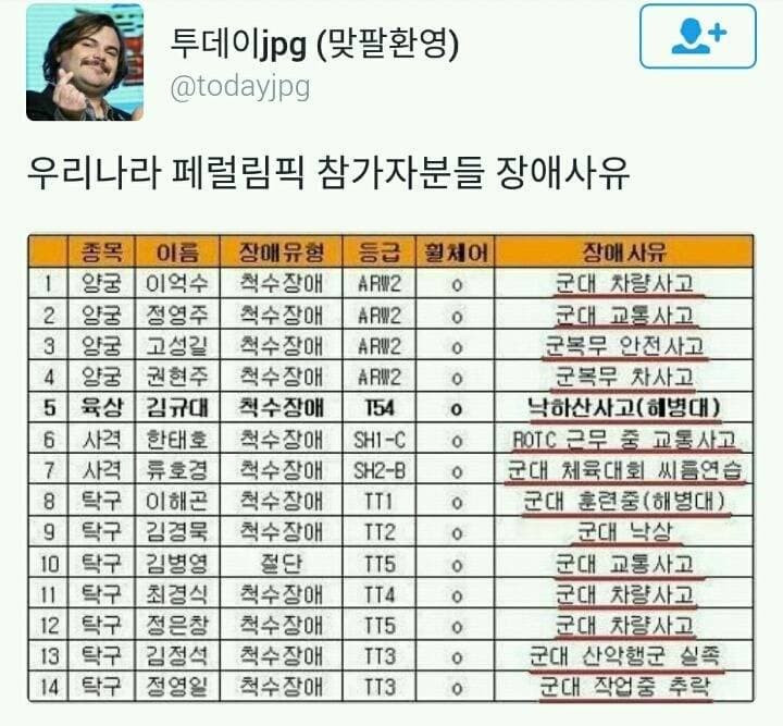 우리나라 페럴림픽 선수들 눈물나는 장애 사유.. 버디버디 0 320 0 3시간전 link URL 복사: https://humorpick.com/bbs/board.php?bo_table=humor&wr_id=402406 아.. 0