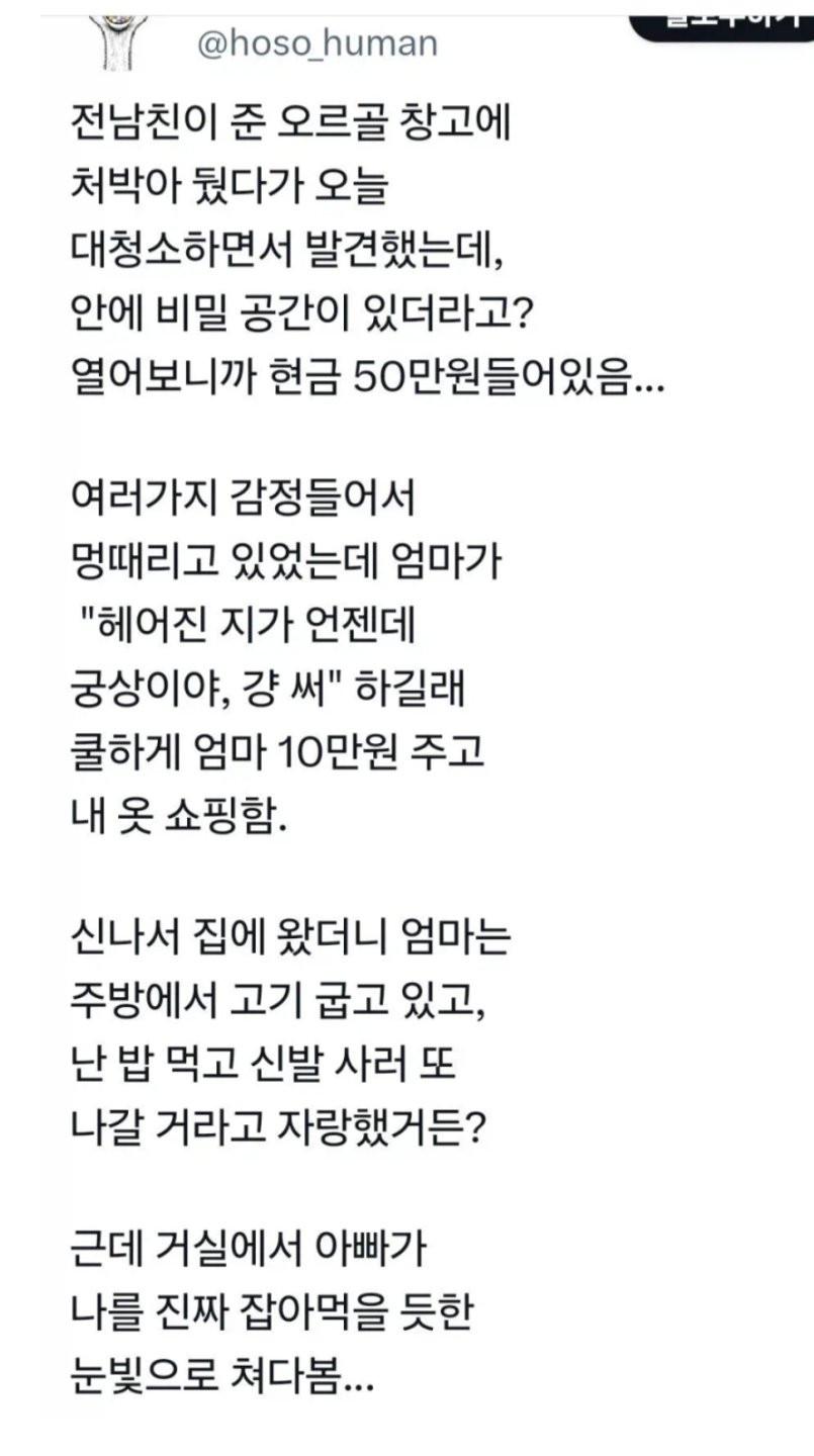 전남친이 준 선물안에서 돈을 발견함 칠성그룹 0 269 0 1시간전 link URL 복사: https://humorpick.com/bbs/board.php?bo_table=humor&wr_id=405280 엄마 전남친 돈이었고 0