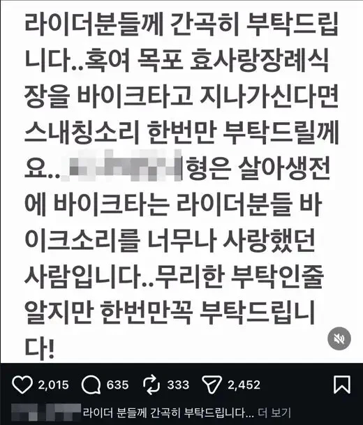바이커 동호회의 장례 문화 김밤비 0 84 0 1시간전 link URL 복사: https://humorpick.com/bbs/board.php?bo_table=humor&wr_id=405462 . 0