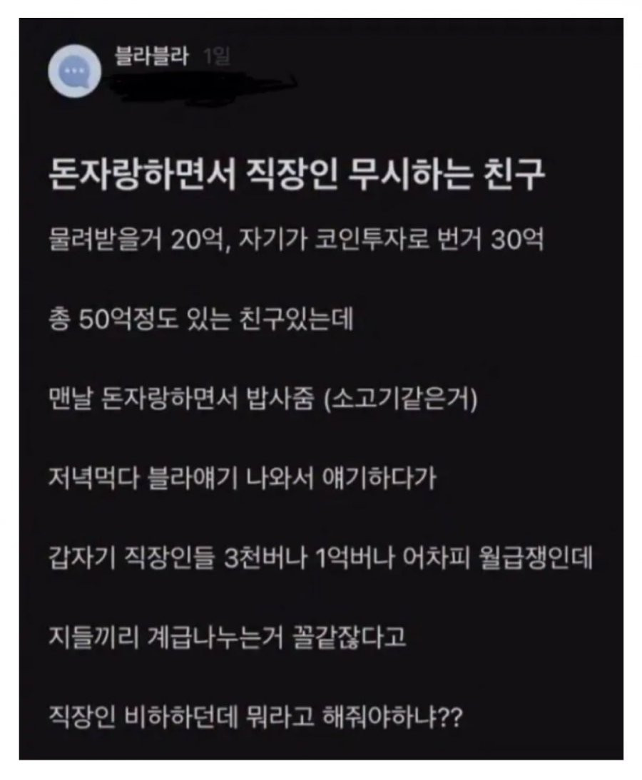 돈자랑 하면서 직장인 무시하는 친구 버디버디 0 241 0 2시간전 link URL 복사: https://humorpick.com/bbs/board.php?bo_table=humor&wr_id=406542 0