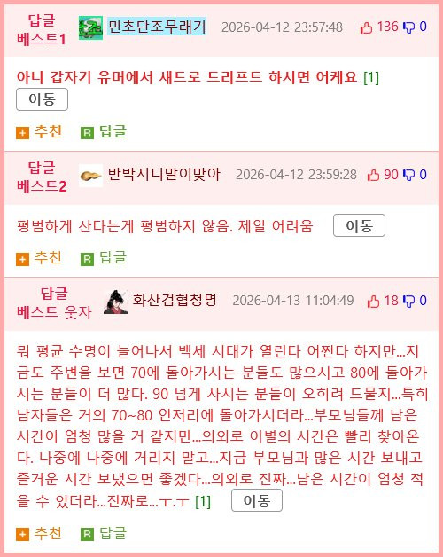 사람이 100살까지 사는줄 알았음 우라칸 0 190 0 4시간전 link URL 복사: https://humorpick.com/bbs/board.php?bo_table=humor&wr_id=407600 이 문장이 보이면 video 태그를 지원 하지 않는 브라우저 입니다.이 문장이 보이면 video 태그를 지원 하지 않는 브라우저 입니다. 0