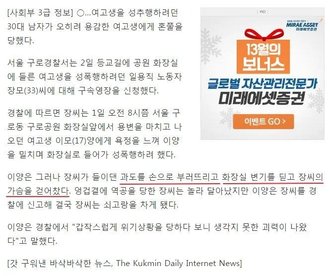 괴한에게 칼로 위협당한 여고생의 침착한 대처 칠성그룹 0 610 0 09.12 03:17 link URL 복사: https://humorpick.com/bbs/board.php?bo_table=humor&wr_id=389275 이 문장이 보이면 video 태그를 지원 하지 않는 브라우저 입니다.이 문장이 보이면 video 태그를 지원 하지 않는 브라우저 입니다. 0