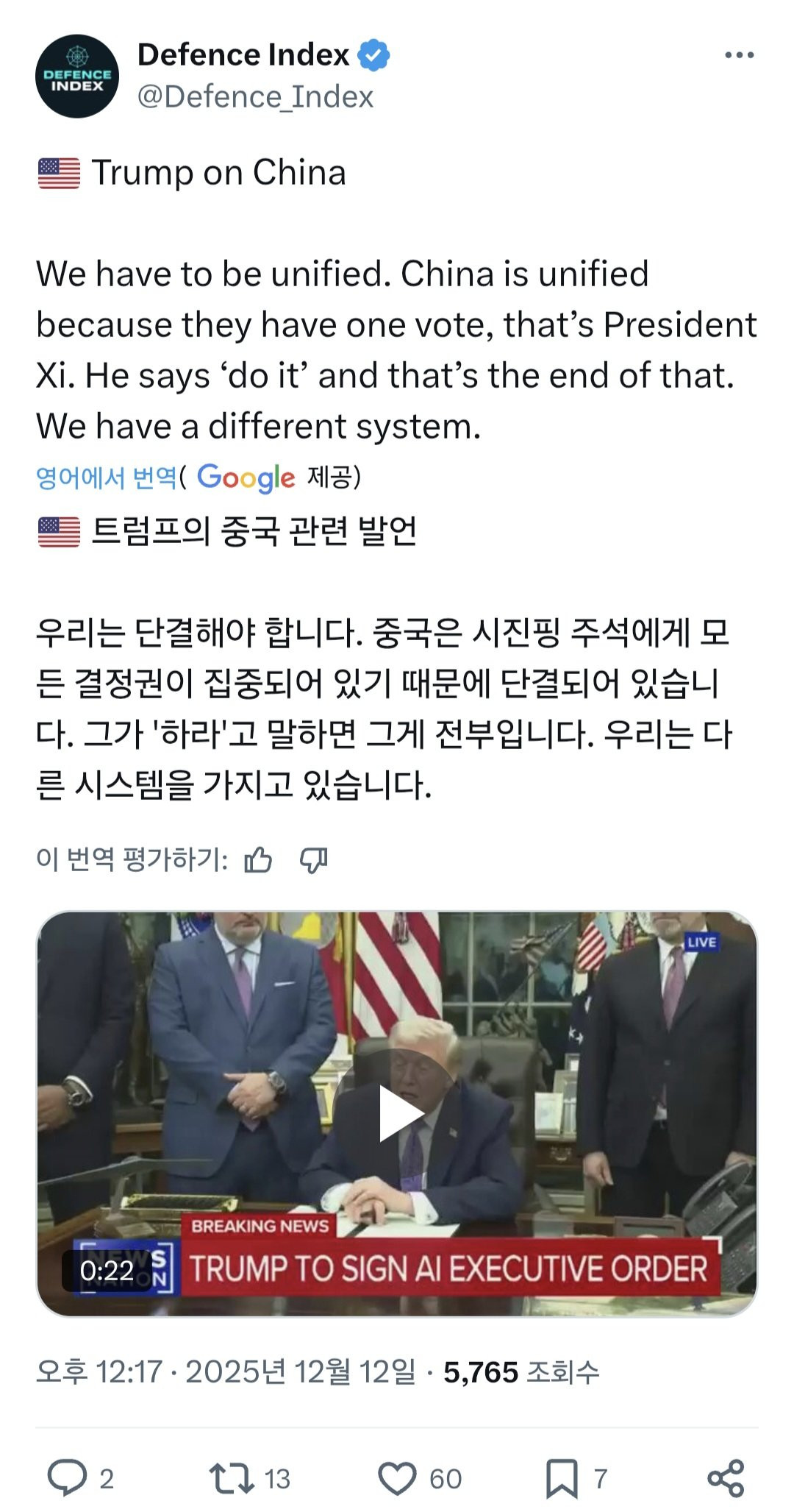 트럼프 "미국은 분열되었고, 중국은 단결되어 있다" 아기물티슈 0 144 0 12.15 14:17 link URL 복사: https://humorpick.com/bbs/board.php?bo_table=humor&wr_id=397324 중국식 독재 시스템이미국식 민주주의 시스템보다정책 진행에 효율적이라는 트럼프. 0