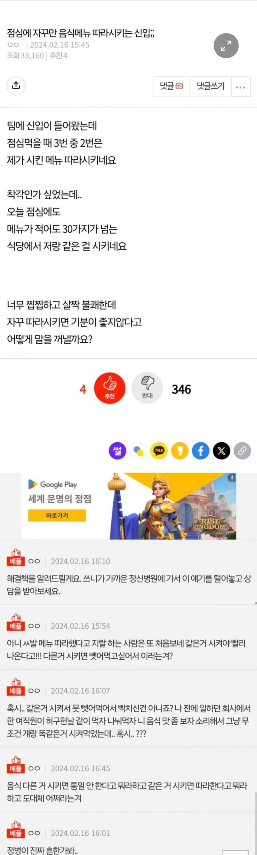 점심에 자꾸만 음식 메뉴 따라 시키는 신입 픽시베이 0 293 0 7시간전 link URL 복사: https://humorpick.com/bbs/board.php?bo_table=humor&wr_id=407043 0