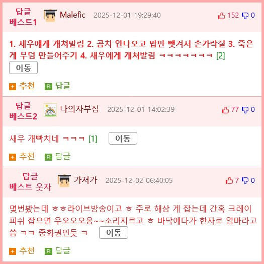 물속에서 집개로 이거저거 잡는 사람.mp4 소밀면 0 275 0 12.04 19:51 link URL 복사: https://humorpick.com/bbs/board.php?bo_table=humor&wr_id=396331 0