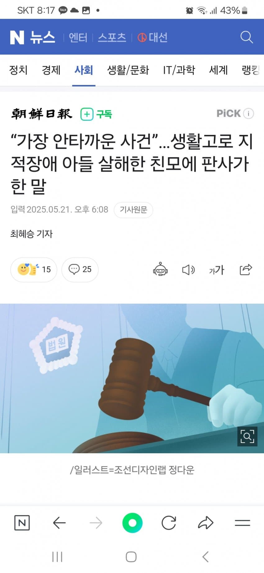“가장 안타까운 사건”…생활고로 지적장애 아들 살해한 친모에 판사가 한 말 Pixel 0 844 0 05.23 10:31 link URL 복사: https://humorpick.com/bbs/board.php?bo_table=humor&wr_id=382127 0
