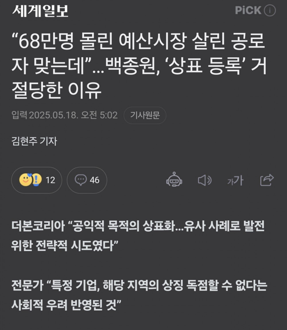 더본코리아 예산시장 상표화... '공익적 목적' 주장 수민이에여 0 1156 0 05.20 08:17 link URL 복사: https://humorpick.com/bbs/board.php?bo_table=humor&wr_id=381679 공익적 목적의 상표화였다 타 지역으로 확산하기 위한 기반 조성의 일환 0