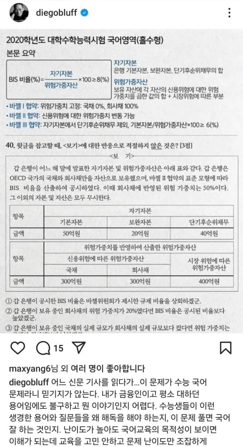 수능 국어를 보고 한탄한 현대카드 부사장 수민이에여 0 1059 0 05.17 16:17 link URL 복사: https://humorpick.com/bbs/board.php?bo_table=humor&wr_id=381465 0