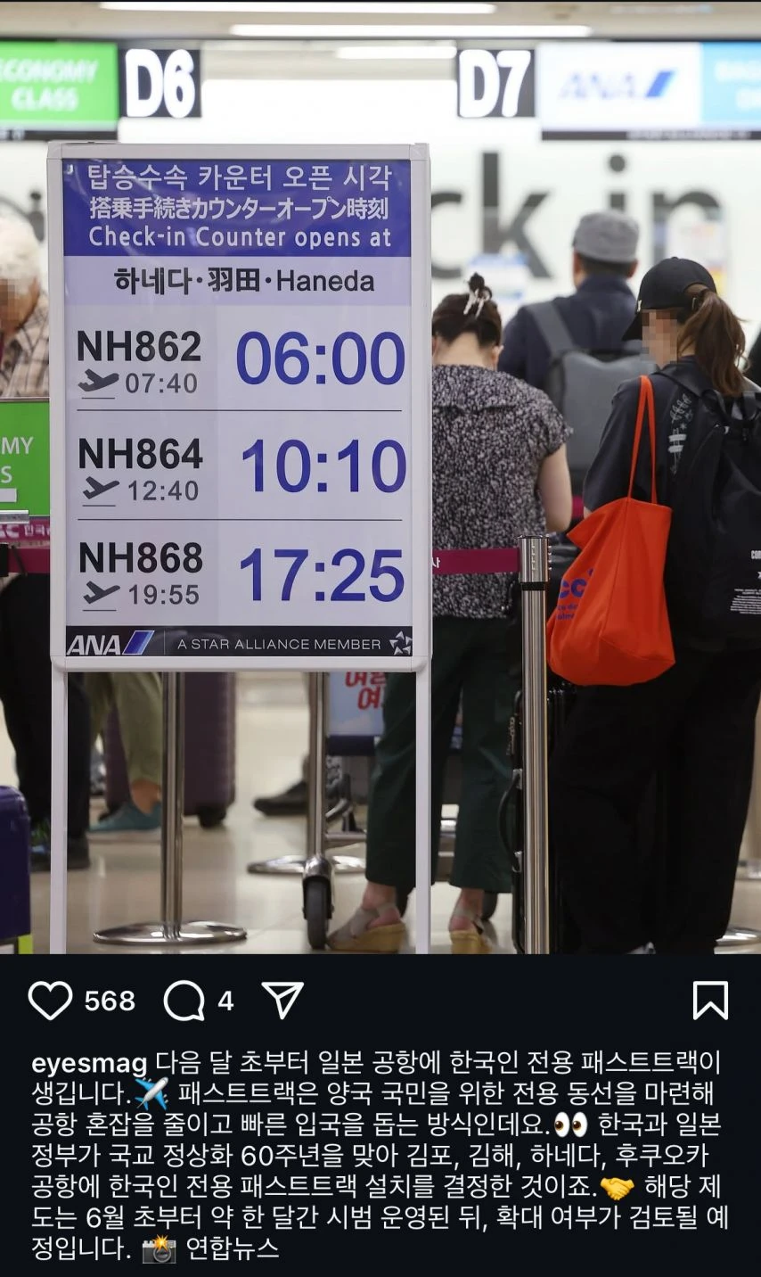 ‘일본 공항, 한국인 전용 패스트트랙 설치‘ 칠성그룹 0 892 0 05.17 15:51 link URL 복사: https://humorpick.com/bbs/board.php?bo_table=humor&wr_id=381463 0