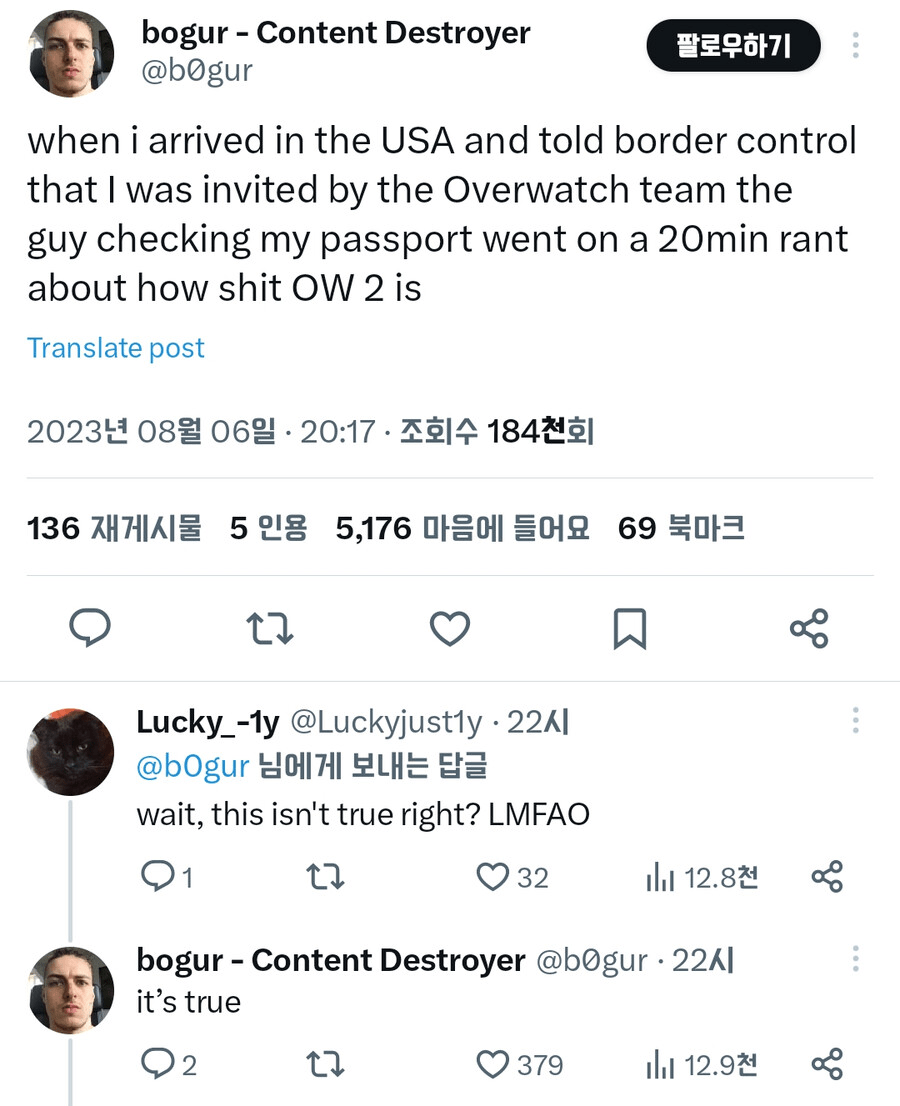 입국심사원에게 20여분간 폭언을 들었다는 프로게이머 Pixel 0 971 0 05.16 11:01 link URL 복사: https://humorpick.com/bbs/board.php?bo_table=humor&wr_id=381324 옵치2는 좀 그렇긴해.. 0