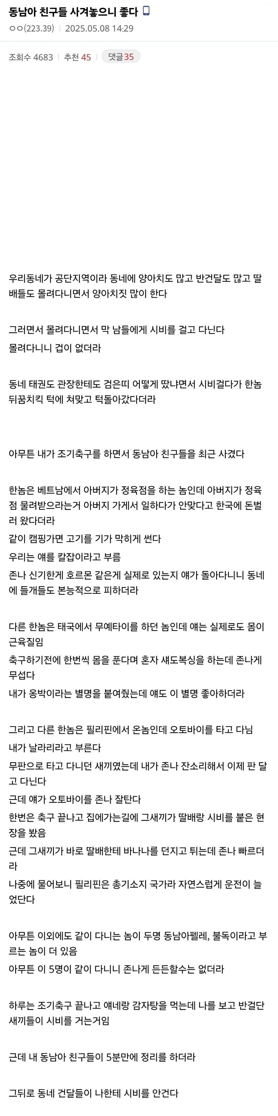 동남아 친구들 사귀어놓으니 좋다 아기물티슈 0 1191 0 05.16 15:51 link URL 복사: https://humorpick.com/bbs/board.php?bo_table=humor&wr_id=381365 0