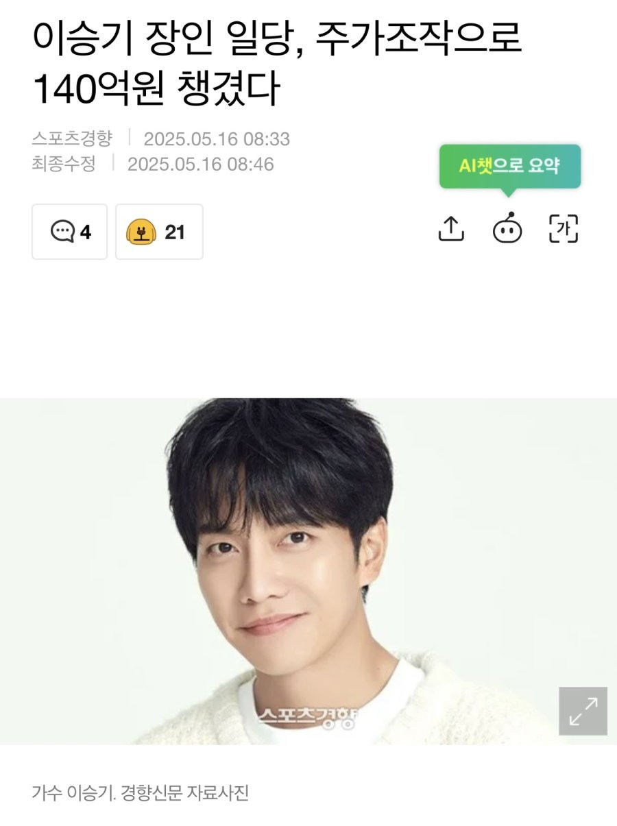 이승기 장인 일당 140억 사기 아기물티슈 0 1176 0 05.16 18:17 link URL 복사: https://humorpick.com/bbs/board.php?bo_table=humor&wr_id=381376 와.. 완전 이 분야 전문가 GOAT인듯수법이 매우 정교하네요 ㄷ ㄷ한편 이승기 근황…속 문드러질듯 0