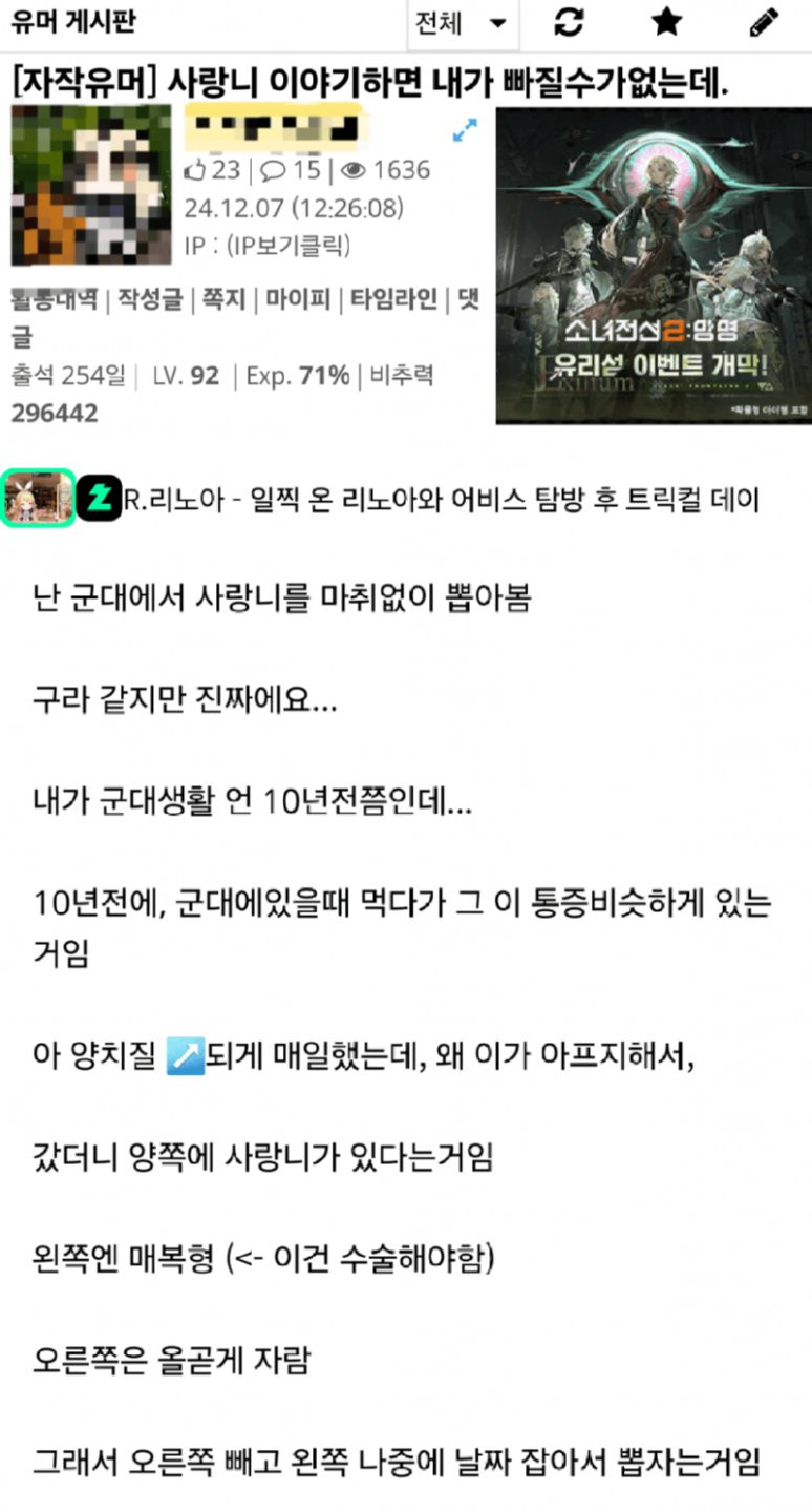 오싹오싹 군대에서 마취없이 사랑니 뽑은 썰.jpg 칠성그룹 0 1034 0 05.16 10:53 link URL 복사: https://humorpick.com/bbs/board.php?bo_table=humor&wr_id=381195 미쳤네 진짜..ㄷㄷㄷㄷ 0