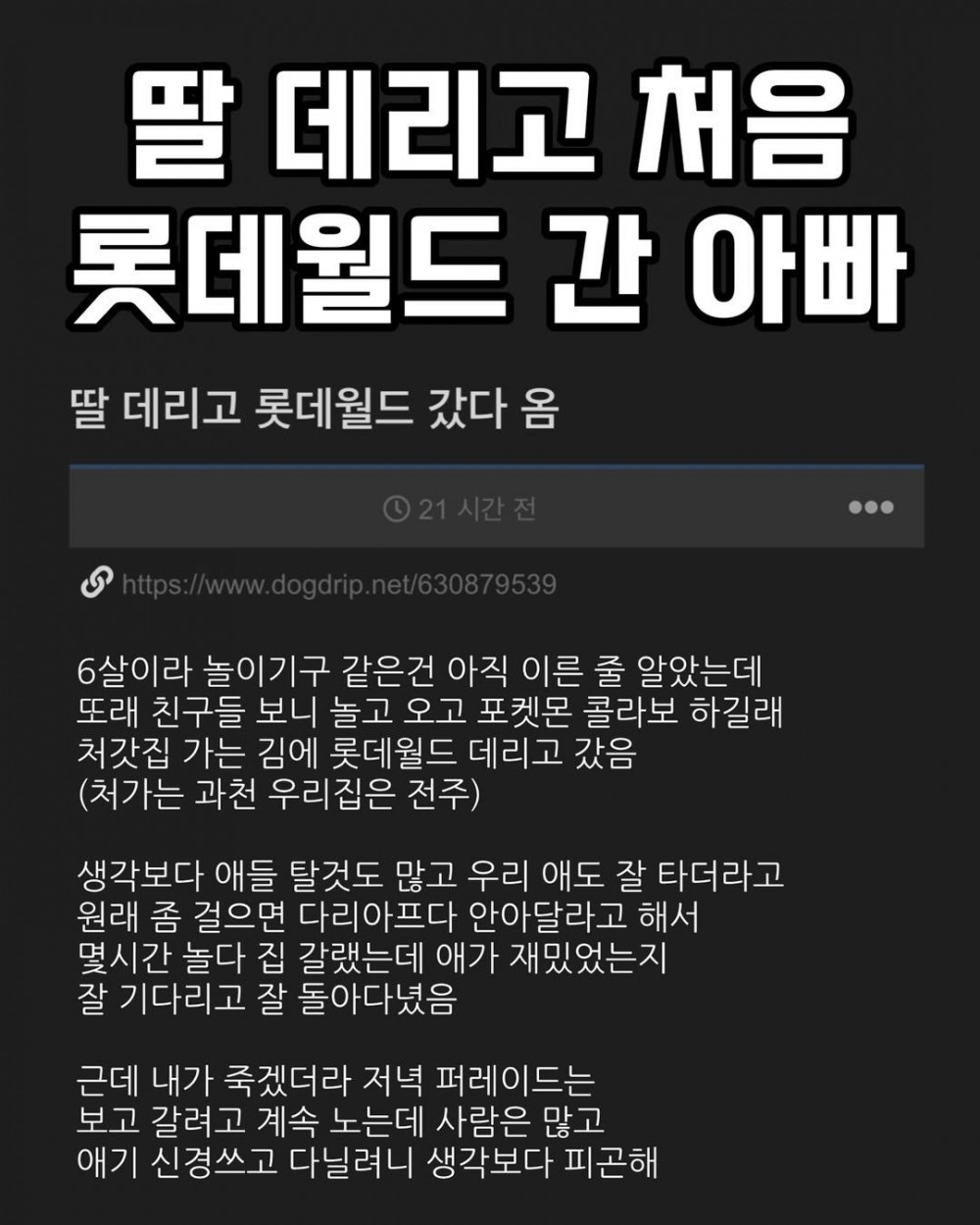 딸 데리고 처음 롯데월드 간 아빠 라이츄 0 1173 0 05.15 06:34 link URL 복사: https://humorpick.com/bbs/board.php?bo_table=humor&wr_id=380961 0