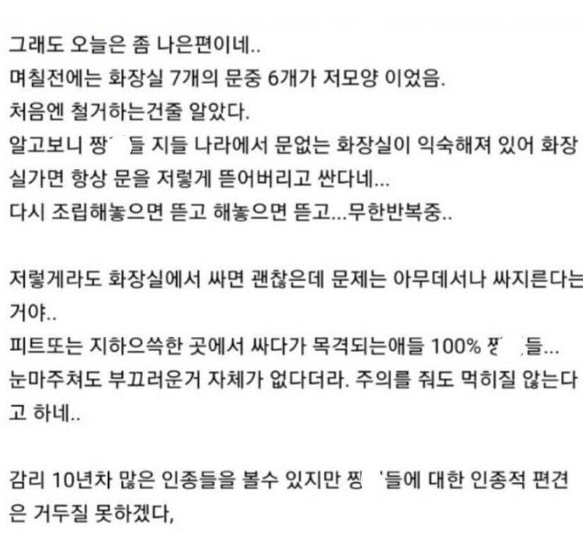 건설현장 화장실 문을 자꾸 뜯는... 몽둥이 0 889 0 05.25 09:17 link URL 복사: https://humorpick.com/bbs/board.php?bo_table=humor&wr_id=382334 건설현장 화장실 문을 자꾸 뜯는... .. 0