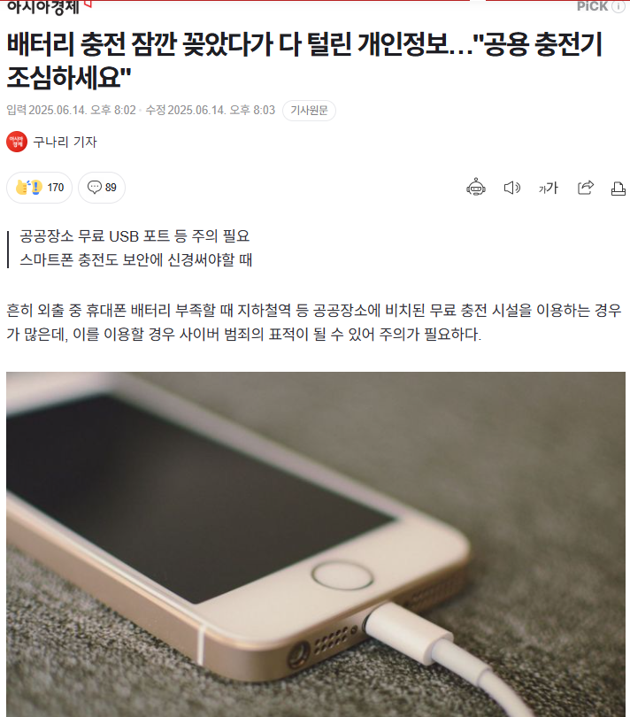 배터리 충전 잠깐 꽂았다가 다 털린 개인정보…"공용 충전기 조심하세요" 아기물티슈 0 868 0 06.16 03:00 link URL 복사: https://humorpick.com/bbs/board.php?bo_table=humor&wr_id=384232 https://n.news.naver.com/article/277/0005607591?cds=news_my 0