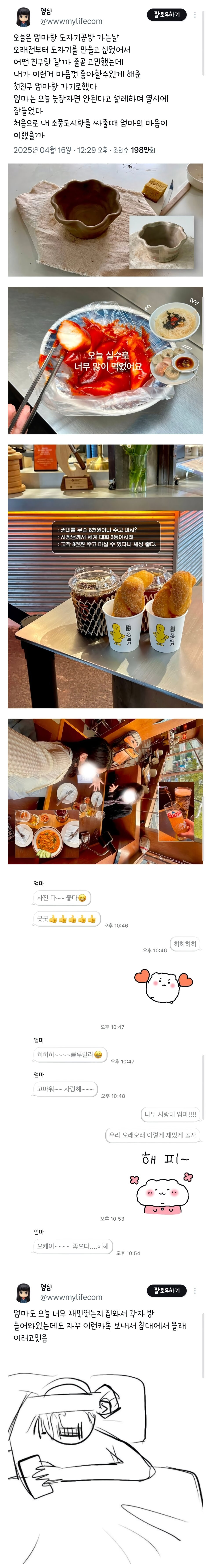 엄마랑 하루 데이트 하고 온 딸의 후기 버디버디 0 1434 0 06.16 10:00 link URL 복사: https://humorpick.com/bbs/board.php?bo_table=humor&wr_id=384260 0