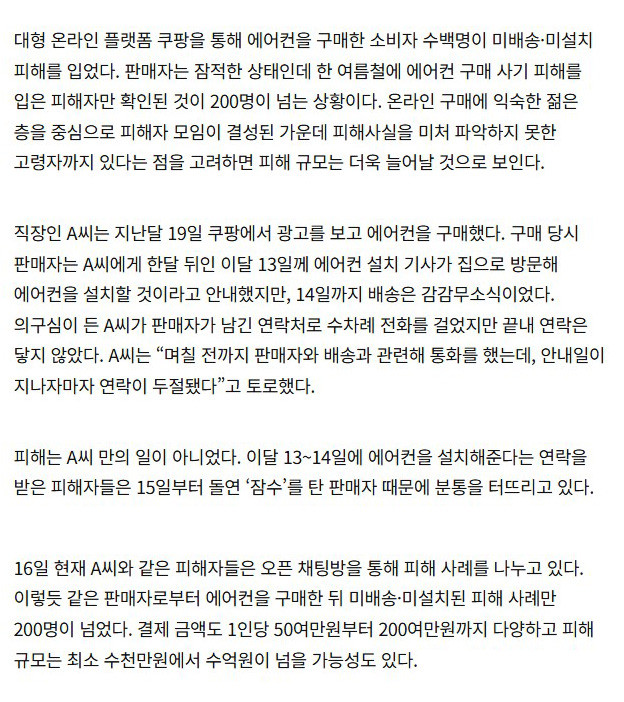 쿠팡 수천만원대 에어컨 사기 발생 버디버디 0 728 0 07.20 23:17 link URL 복사: https://humorpick.com/bbs/board.php?bo_table=humor&wr_id=386368 https://www.kyeongin.com/article/1746297 0
