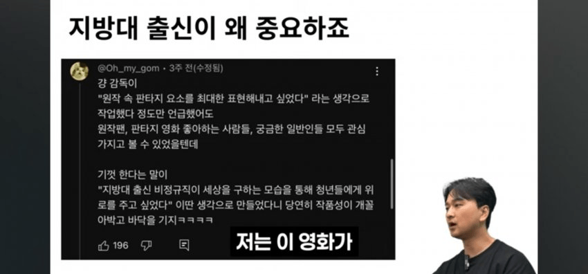 원작 웹소설은 안보고 웹툰만 봤다는 영화 리뷰 유튜버인데 시사회로 봤다고 함