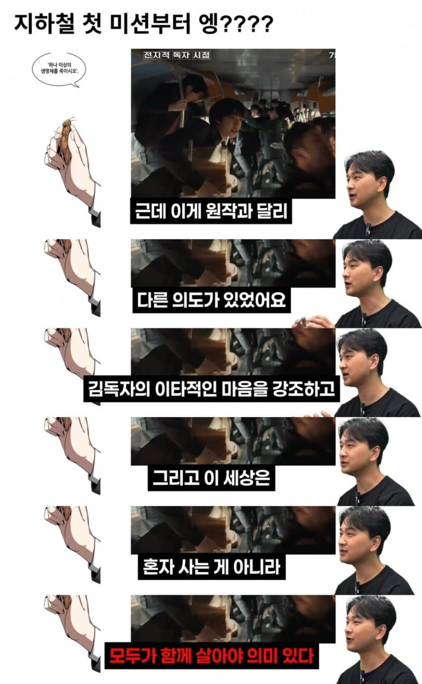 공동체주의.... 같이 공생하자....  이타적인 마음을 가진 김독자..,. 이야기의 결이 신과함께 스타일이라고 계속 강조됨