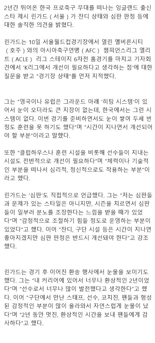 K리그 떠나는 린가드 작심발언 “심판, 일부러 분노 조장…반드시 개선돼야” 푸른바다 0 292 0 12.15 22:51 link URL 복사: https://humorpick.com/bbs/board.php?bo_table=humor&wr_id=397358 한편 그가 쟁여가는 0