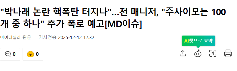 연예게에 핵폭탄 터지나 아기물티슈 0 83 0 2시간전 link URL 복사: https://humorpick.com/bbs/board.php?bo_table=humor&wr_id=397450 연예게에 핵폭탄 터지나 백개중 하나 ㄷㄷㄷ 0