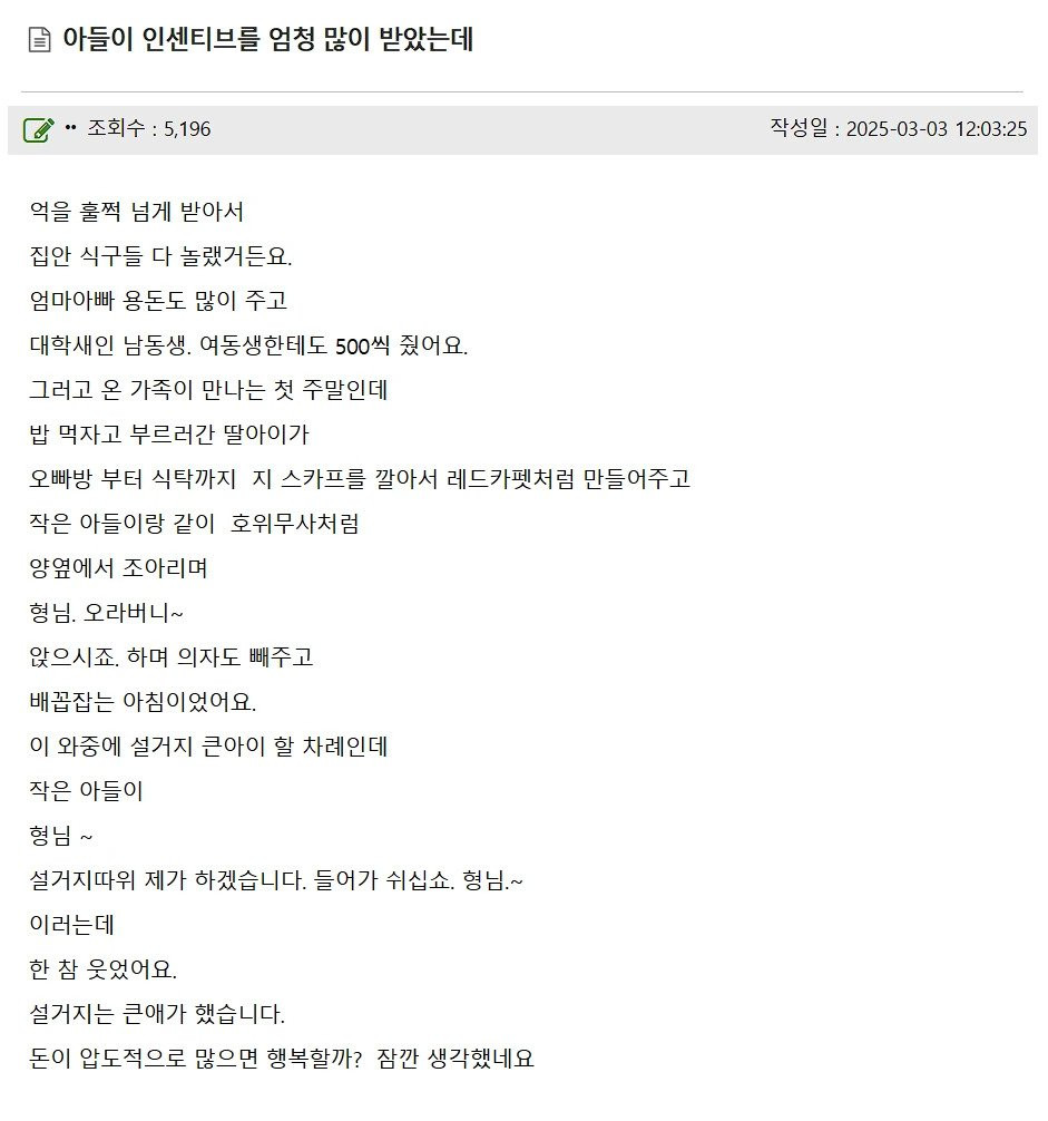 아들이 인센티브를 엄청 많이 받았는데.. 버디버디 0 212 0 2시간전 link URL 복사: https://humorpick.com/bbs/board.php?bo_table=humor&wr_id=397973 0