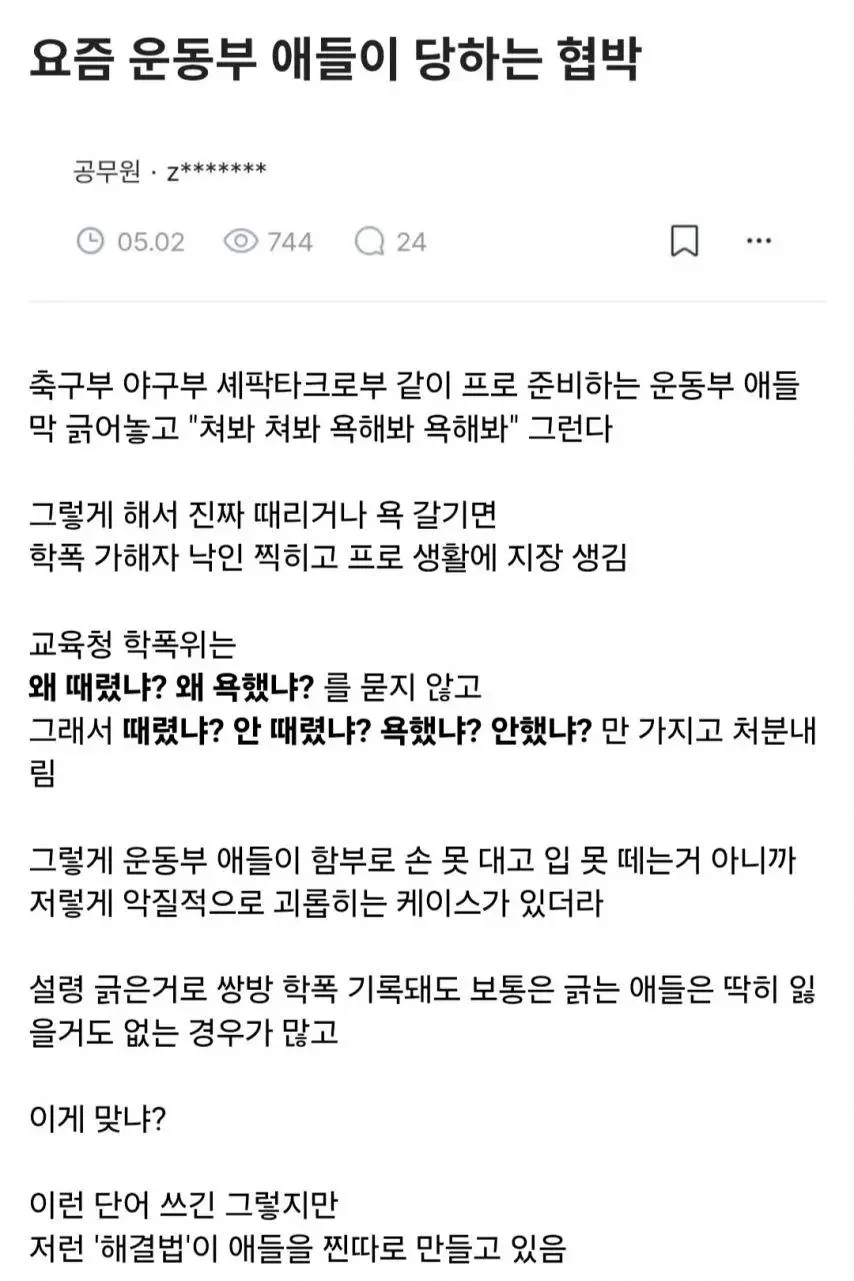 요즘 학교에서 운동부가 당하고 있다는 협박.jpg 버디버디 0 232 0 3시간전 link URL 복사: https://humorpick.com/bbs/board.php?bo_table=humor&wr_id=398414 0