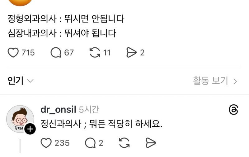 심장내과 vs 정형외과 수민이에여 0 290 0 2시간전 link URL 복사: https://humorpick.com/bbs/board.php?bo_table=humor&wr_id=398497 0