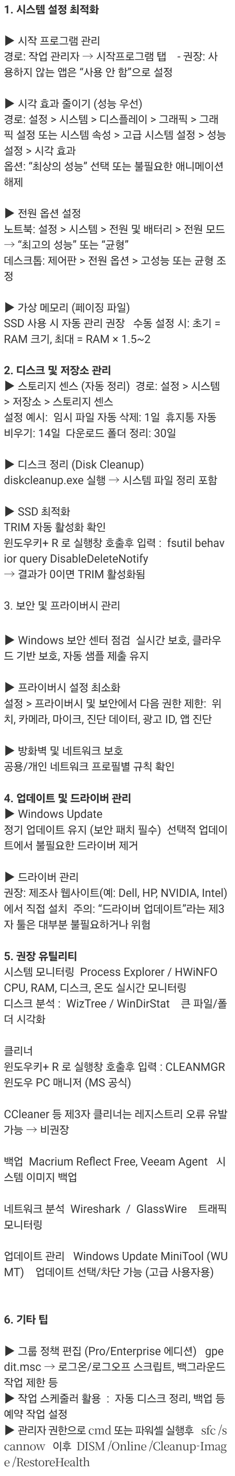 Windows 11 최적화 및 관리 방법.jpg 라이츄 0 147 0 2시간전 link URL 복사: https://humorpick.com/bbs/board.php?bo_table=humor&wr_id=399996 Windows 11 최적화 및 관리 방법 0