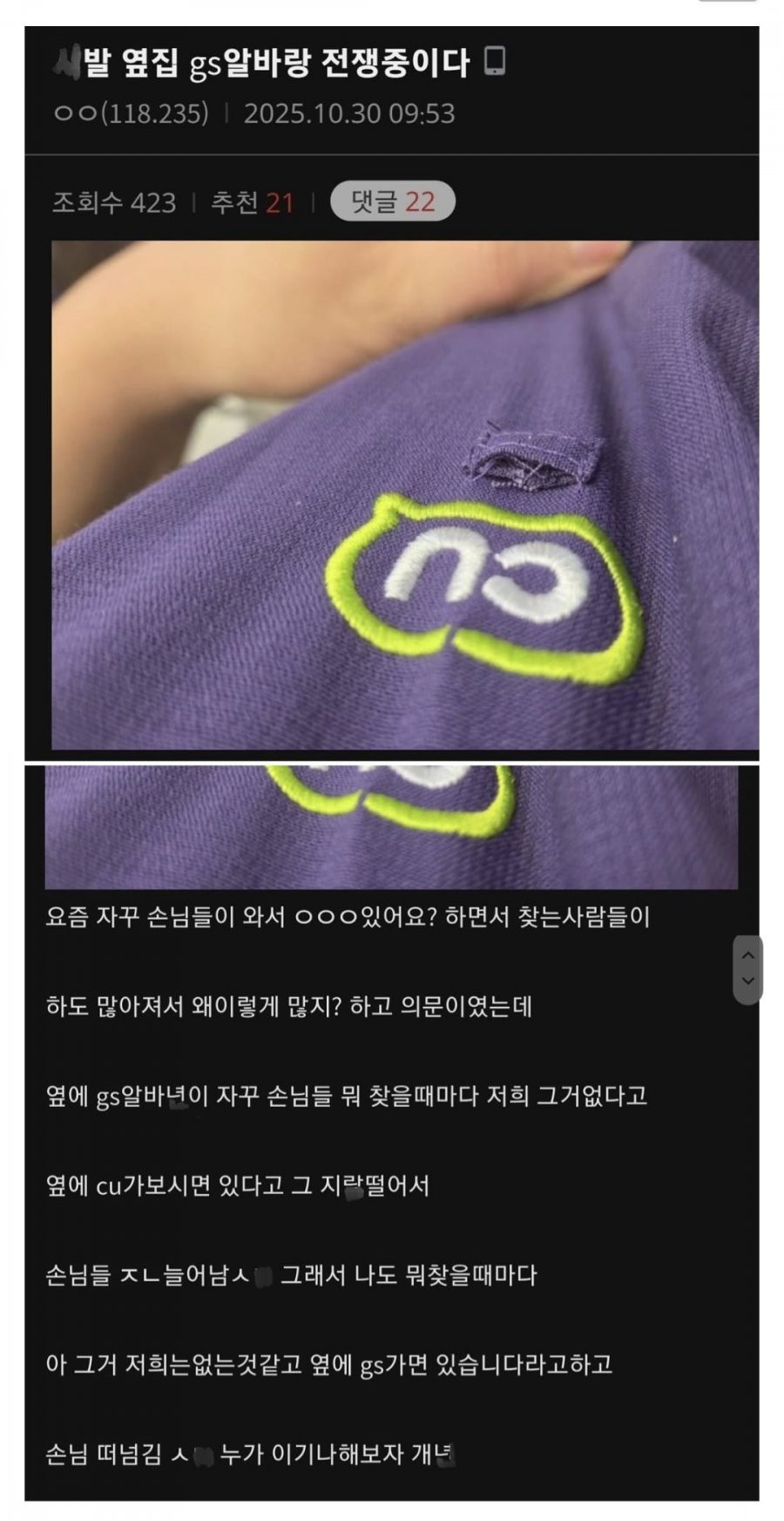 나 CU알바인데 옆집 GS알바랑 전쟁중이다 아기물티슈 0 267 0 2시간전 link URL 복사: https://humorpick.com/bbs/board.php?bo_table=humor&wr_id=400040 0