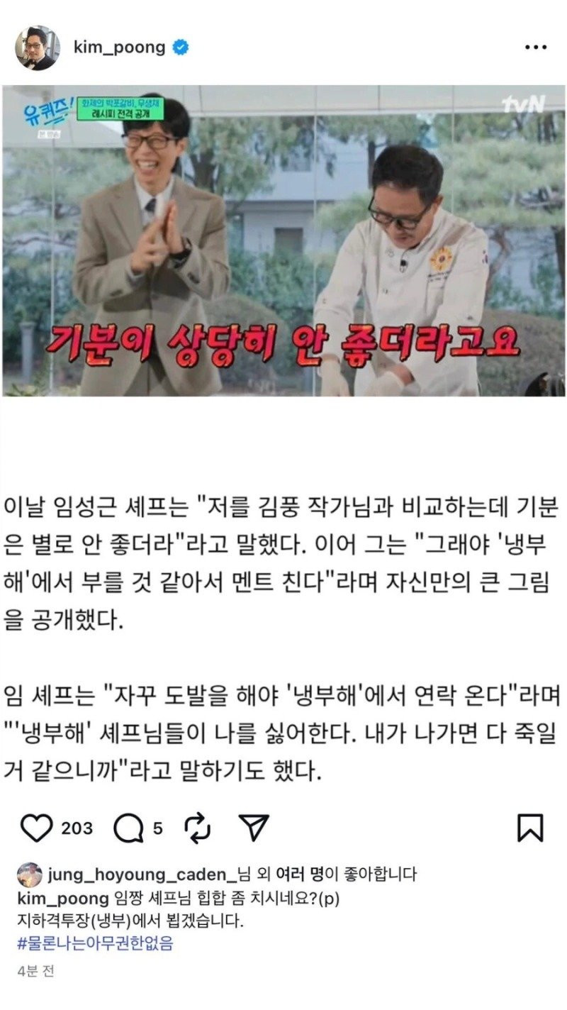 임짱의 도발을 받아들인 김풍.jpg 오크대장 0 136 0 2시간전 link URL 복사: https://humorpick.com/bbs/board.php?bo_table=humor&wr_id=400105 0