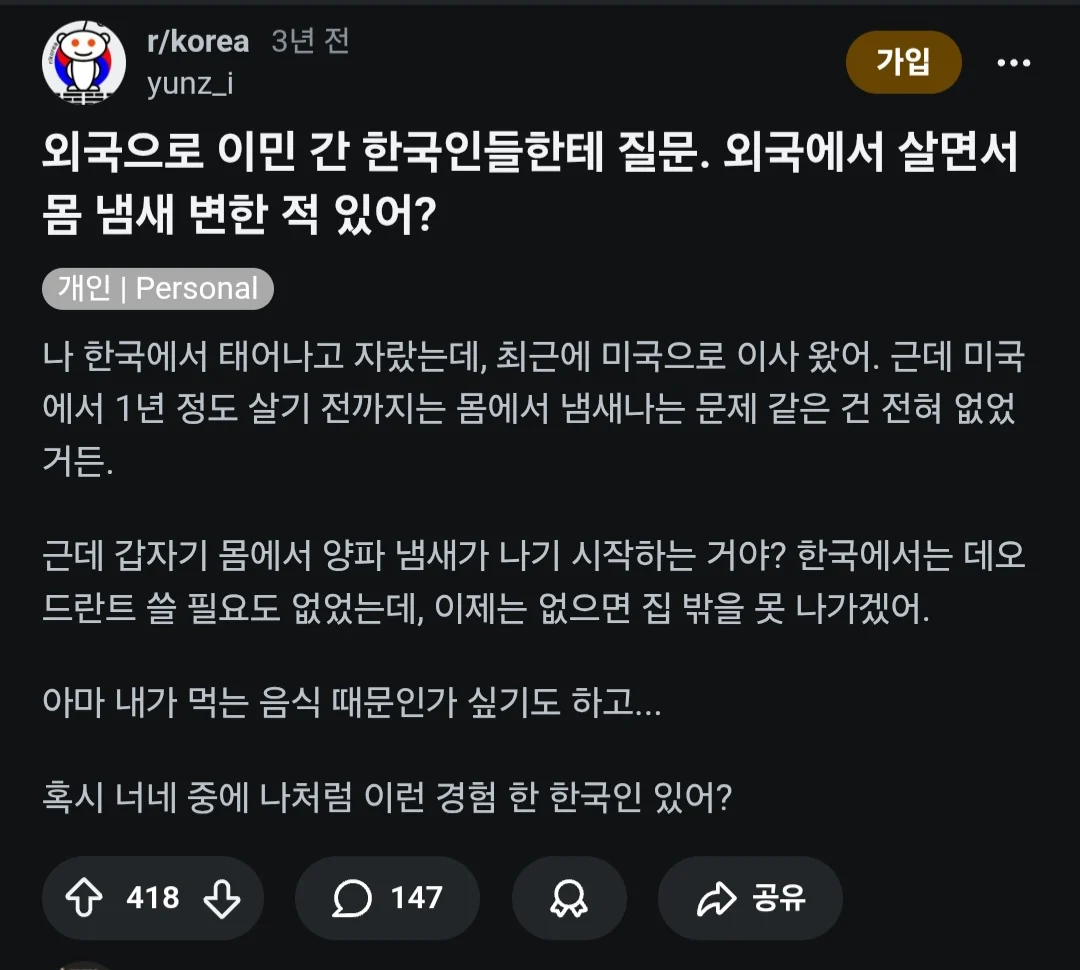 외국에 살면서 몸에서 냄새가 나기 시작했다는 사람 라카라카 0 284 0 2시간전 link URL 복사: https://humorpick.com/bbs/board.php?bo_table=humor&wr_id=401071 0