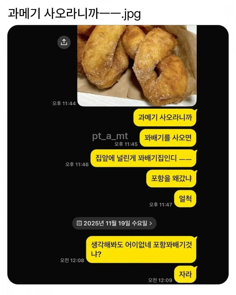 꽈배기 대참사 ㅋㅋㅋ 버디버디 0 232 0 2시간전 link URL 복사: https://humorpick.com/bbs/board.php?bo_table=humor&wr_id=401535 0