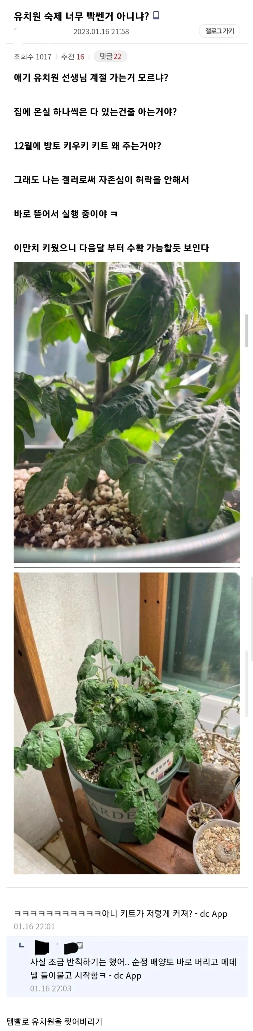 겨울에 방울토마토 키우기 숙제를 준 유치원에 분노한 부모