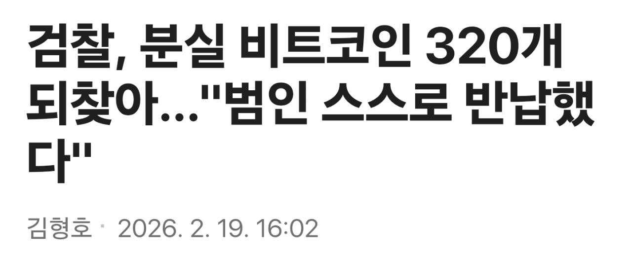 검찰, 분실한 비트코인 320개 되찾아 범인 스스로 반납 슬라임 0 52 0 2시간전 link URL 복사: https://humorpick.com/bbs/board.php?bo_table=humor&wr_id=403201 https://v.daum.net/v/20260219160225854 0