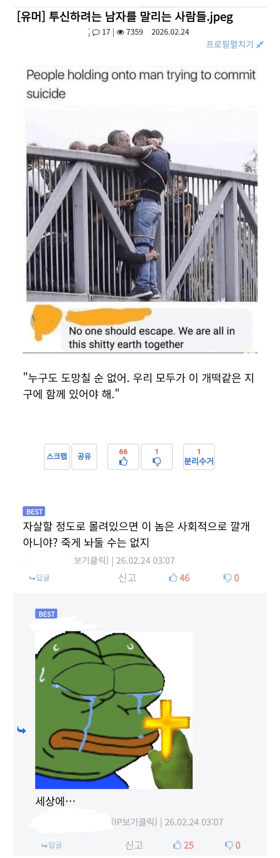 현실 로그아웃을 사회가 막는 이유 소밀면 0 282 0 2시간전 link URL 복사: https://humorpick.com/bbs/board.php?bo_table=humor&wr_id=403755 0