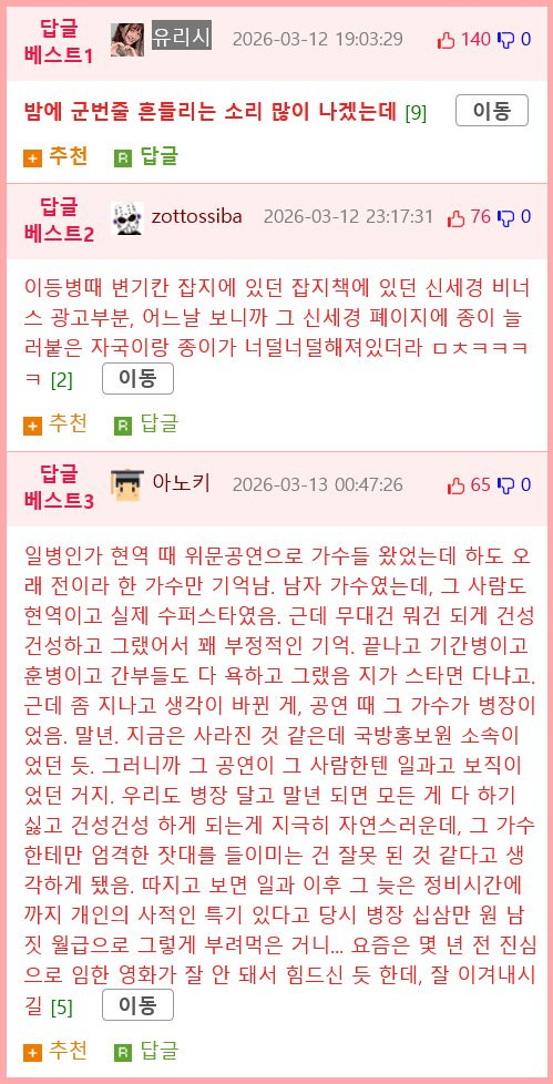 ㅇㅎ) 군대위문공연 근황 수민이에여 0 312 0 2시간전 link URL 복사: https://humorpick.com/bbs/board.php?bo_table=humor&wr_id=405355 이 문장이 보이면 video 태그를 지원 하지 않는 브라우저 입니다.이 문장이 보이면 video 태그를 지원 하지 않는 브라우저 입니다. 0