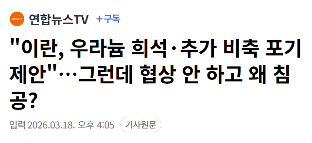 "이란, 우라늄 희석·추가 비축 포기 제안"…그런데 왜 침공? 메이플 0 99 0 2시간전 link URL 복사: https://humorpick.com/bbs/board.php?bo_table=humor&wr_id=405520 0
