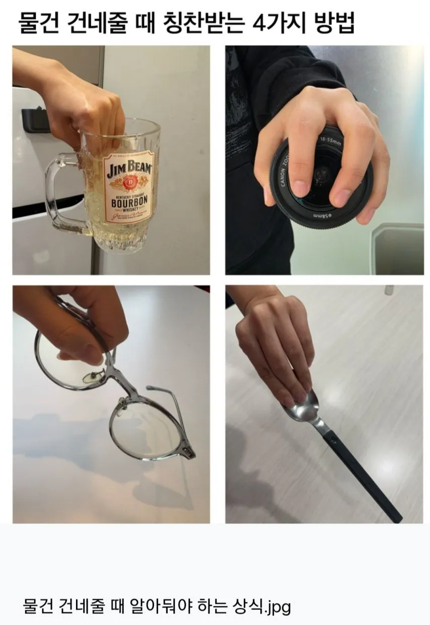 물건 건네줄 때 칭찬받는 4가지 방법 슬라임 0 280 0 2시간전 link URL 복사: https://humorpick.com/bbs/board.php?bo_table=humor&wr_id=407345 0