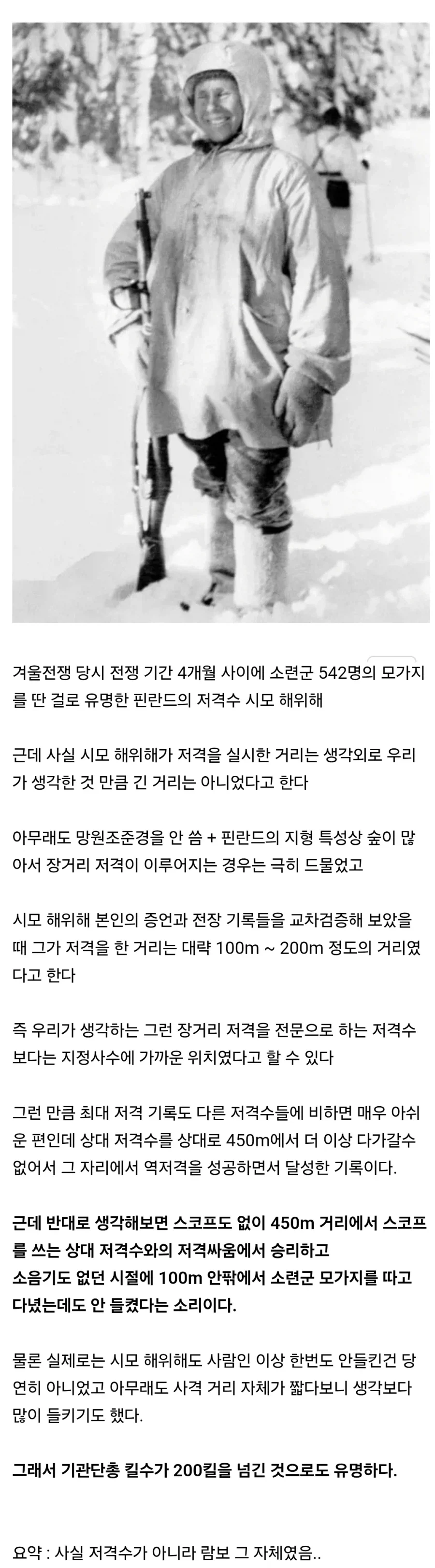 세계 최고의 저격수라는 시모 해위해의 진실 아기물티슈 0 193 0 2시간전 link URL 복사: https://humorpick.com/bbs/board.php?bo_table=humor&wr_id=407705 0
