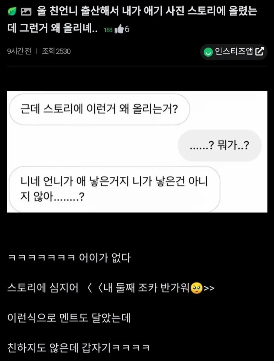 조카 사진 올렸더니 이상한 문자 받음 버디버디 0 319 0 1시간전 link URL 복사: https://humorpick.com/bbs/board.php?bo_table=humor&wr_id=407706 오지랖도..... 0