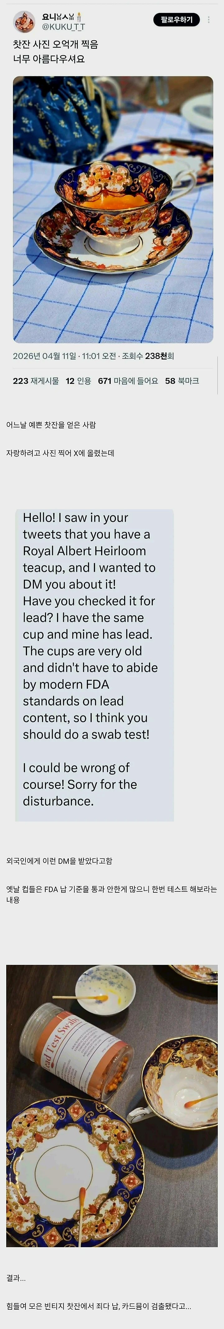 트위터에 예쁜 찻잔 사진을 자랑하던 사람의 최후 Pixel 0 232 0 2시간전 link URL 복사: https://humorpick.com/bbs/board.php?bo_table=humor&wr_id=408041 0