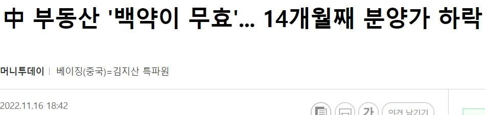 중국에서 부동산이 14개월째 연속 하락하고 있다는 뉴스입니다