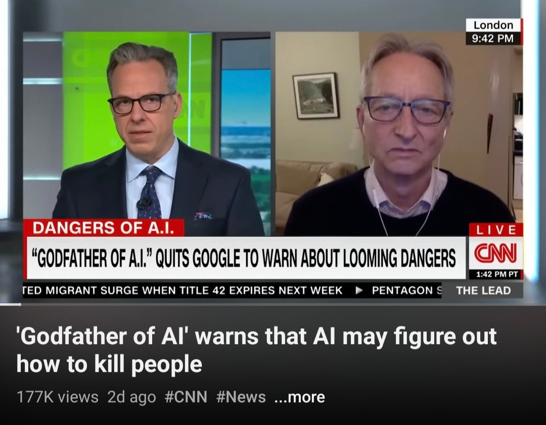 최근 구글을 관두고 AI의 위험성을 알리는 인터뷰를 계속 하고 있음