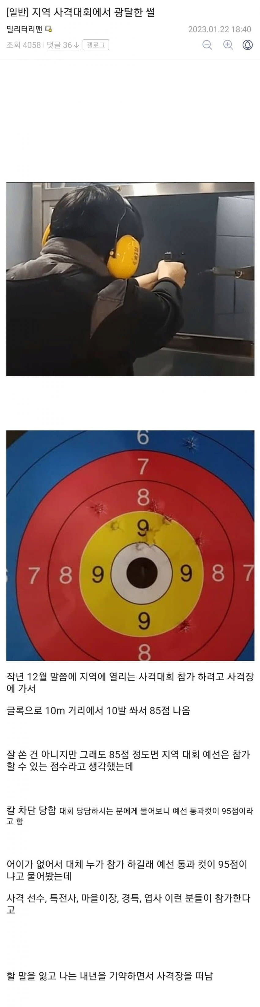 지역 사격대회 광탈한 썰..jpg 버디버디 0 386 0 01.10 12:00 link URL 복사: https://humorpick.com/bbs/board.php?bo_table=ssul&wr_id=1486 0