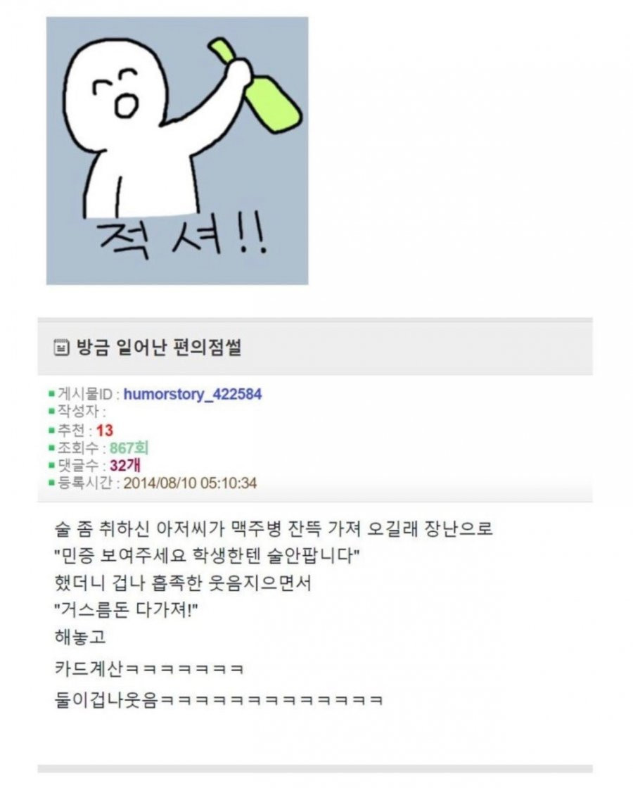 술 취한 아재랑 농담따먹기한 썰 버디버디 0 312 0 2시간전 link URL 복사: https://humorpick.com/bbs/board.php?bo_table=ssul&wr_id=1567 0