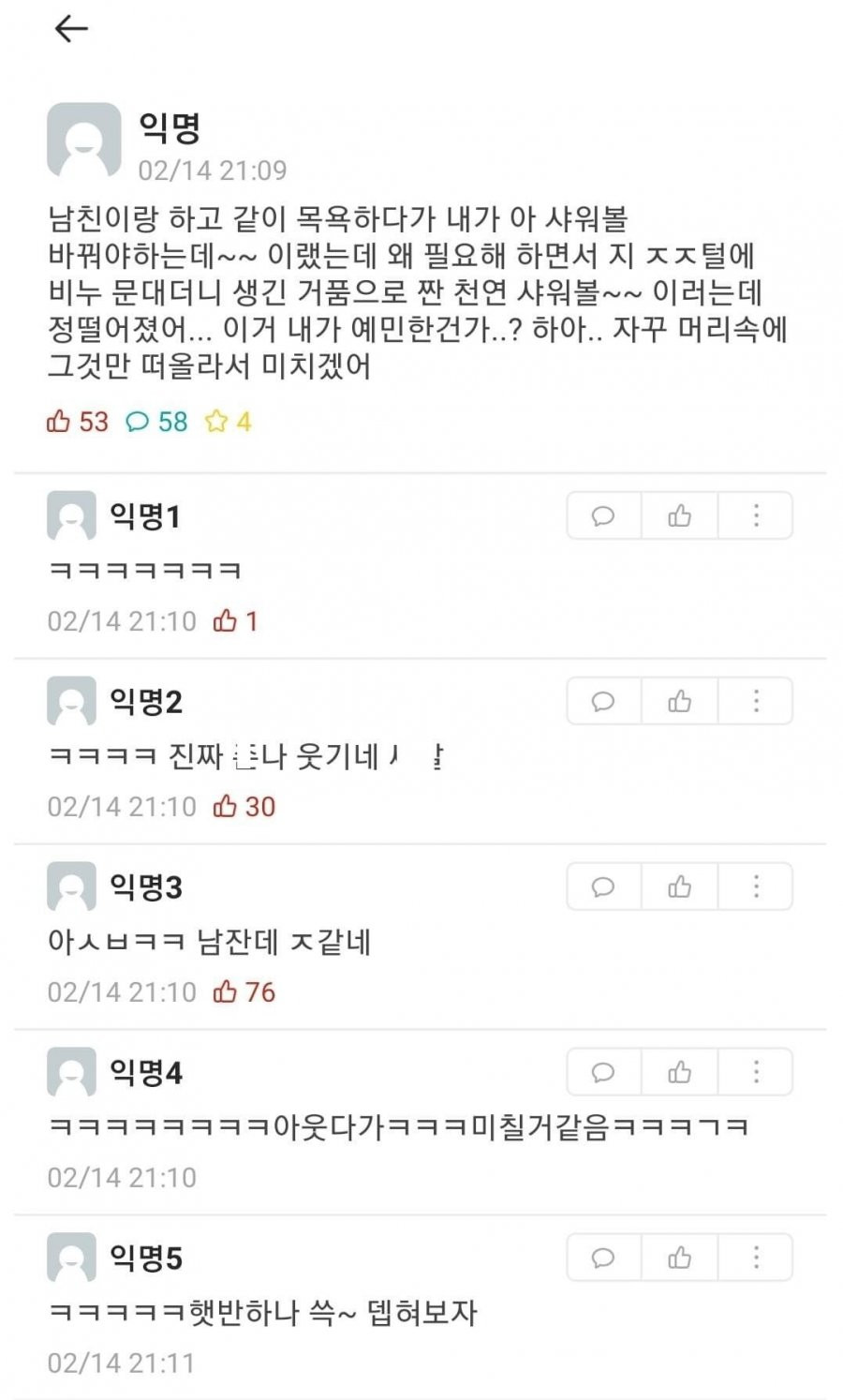 남친이랑 같이 샤워하다 정떨어진 썰.jpg 아기물티슈 0 307 0 2시간전 link URL 복사: https://humorpick.com/bbs/board.php?bo_table=ssul&wr_id=1608 ㅋㅋㅋㅋㅋ 근데 저게 정떨어질 일인가요? 0